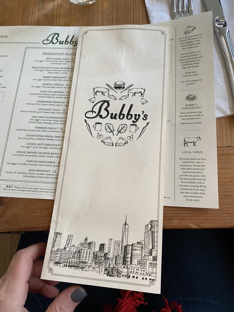 Welcome to Bubby's Tribeca, a cozy American comfort food spot located in Manhattan, New York. Founded by chef Ron Silver, this restaurant offers a variety of breakfast, brunch, and sandwich options. Known for its thick, fluffy pancakes, biscuits, and massive portion sizes, Bubby's is a go-to spot for delicious comfort food. The menu includes vegan and vegetarian options, showcasing their commitment to inclusivity. Customers praise the attentive service, laid-back vibe, and inviting ambiance. Whether you're craving a savory dish like crab cake benedict or indulging in sweet treats like the pancake flight, Bubby's has something for everyone. Experience the fantastic food, great drinks, and friendly atmosphere at Bubby's Tribeca.